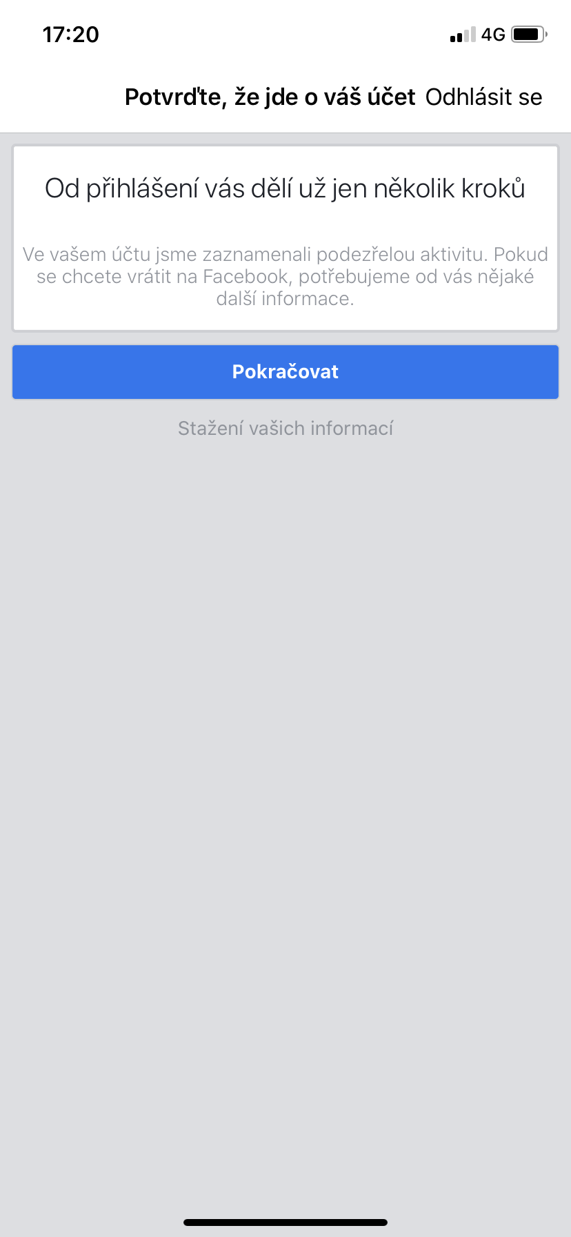 Nechal bych tomu čas. Třeba to zase odblokujou. V dobách, kdy bylo členství na FB nutné, jsem takto několikrát skončil na tom, že to po mě chce vylákat nějaké údaje (fotku, telefon, číslo bot a kreditky, občanku) pokaždě se to tvářilo, jako že přes to vlak nejede a po pár dnech byl zase klid. Takže to asi zkouší. Ve skutečnosti jsou to oni, kdo tam chtějí člověka (a tedy konzumenta reklamy) udržet. Dodnes mi tam možná hnije někde v útrobách FB tak tucet profilů, ke kterým se nikdy nepřihlásím, pokud je tedy pravda, že profil tam je na věčné časy.