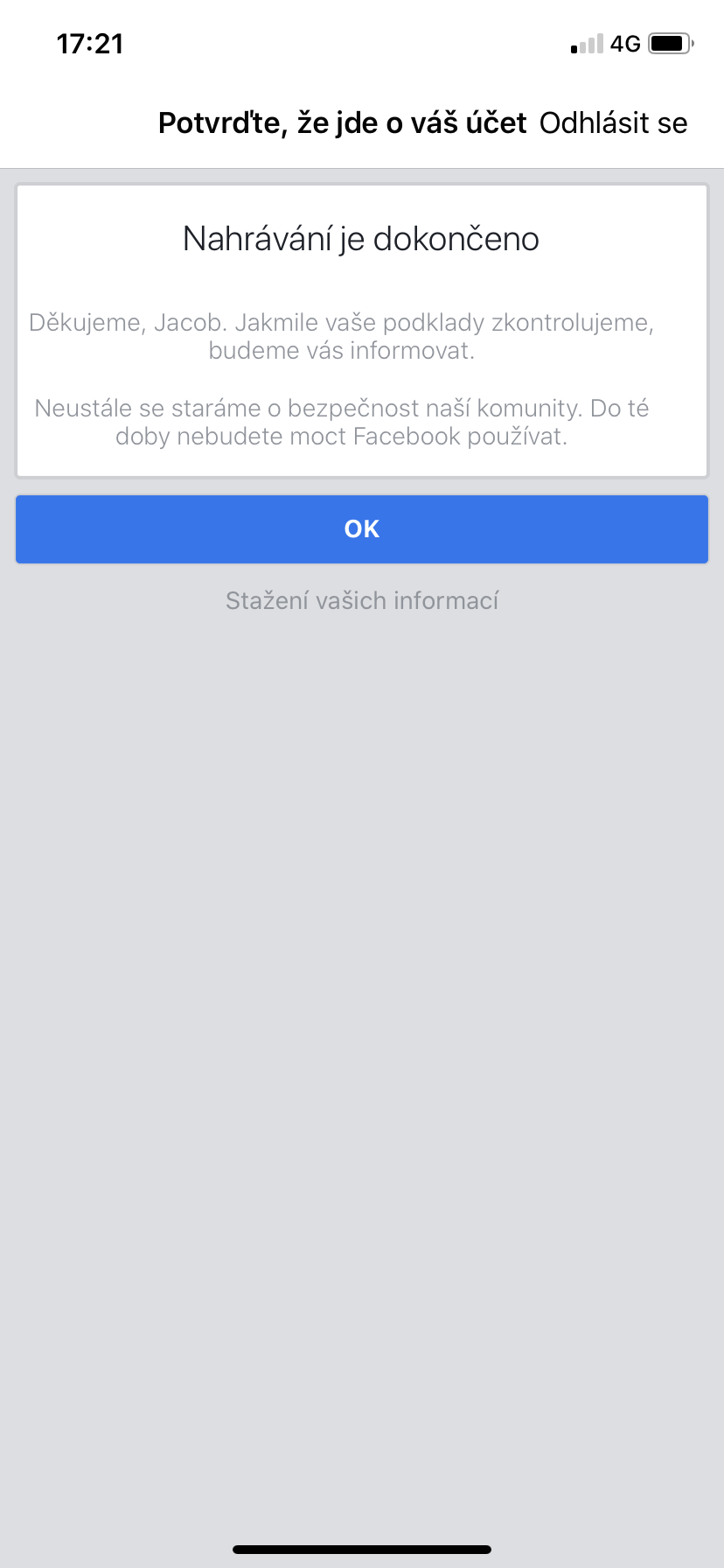 Není to kvůli tomu, že nějaký chytrák tvůj profil nahlásil jako falešný a ty si odmítl ofotit občank…