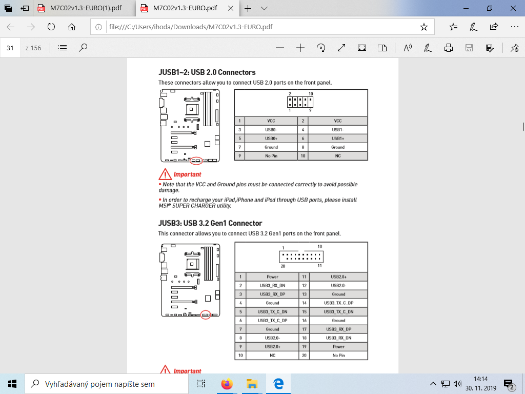 Moze sa zapojit usb 3.0 konektor modry/ 20 pin /zapojit do vstupy na zakladnej doske oznaceny na nej ako JUSB3: USB 3.2 Gen1 Connector ? znacenie podla manualu.