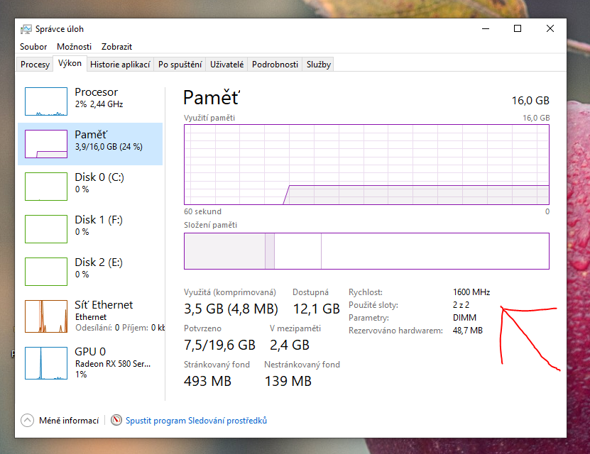 Zdravím zjistil jsem, že mi windows ve správci ukazuje frekvenci u RAMek (HyperX Fury Black 3200Mhz 2x8) pouze 1600Mhz. Vždycky ukazoval správce správně 3200Mhz. No zkusil jsem je prohodit a nepomohlo stále ukazuje 1600Mhz. (pokud vypnu OC na 3200 tak ukazuje 1333 Mhz). No, ale BIOS ukazuje normálně 3200Mhz a příkaz "wmic memorychip get speed" v CMD ukazuje taktéž 3200Mhz. Kde je chyba? Vždy normálně windows ukazoval 3200 proto se ptám. Předem díky za odpovědi.