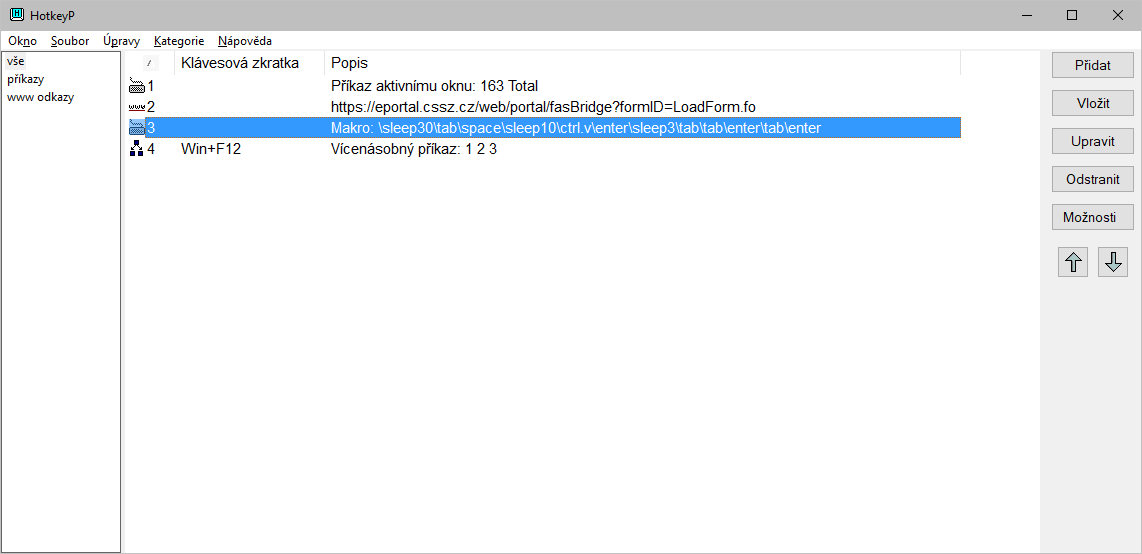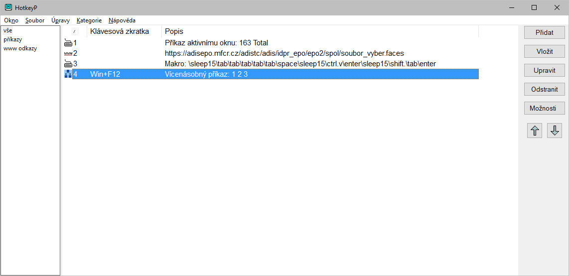 4 klávesová zkratka Win+F12, která příkazy sdruží