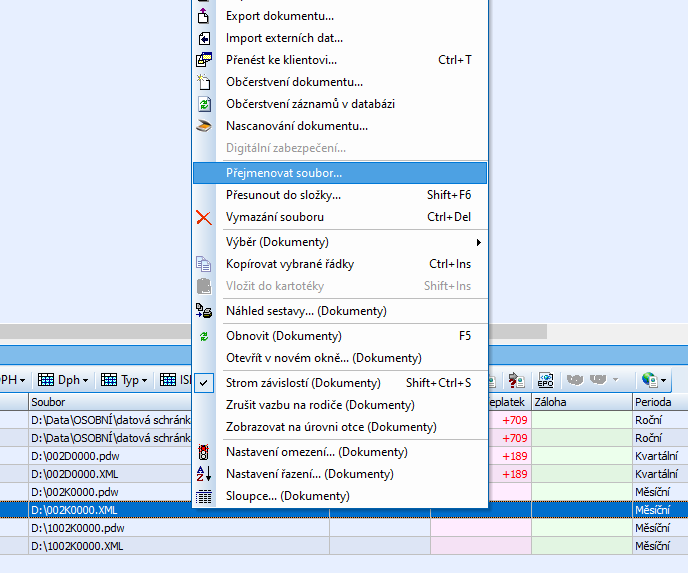 Ty soubory jsou (zatím) v mnoha strukturovaných adresářích na disku (jednotlivé daně, roky, poplatníci), aby to bylo přehledné i mimo program.