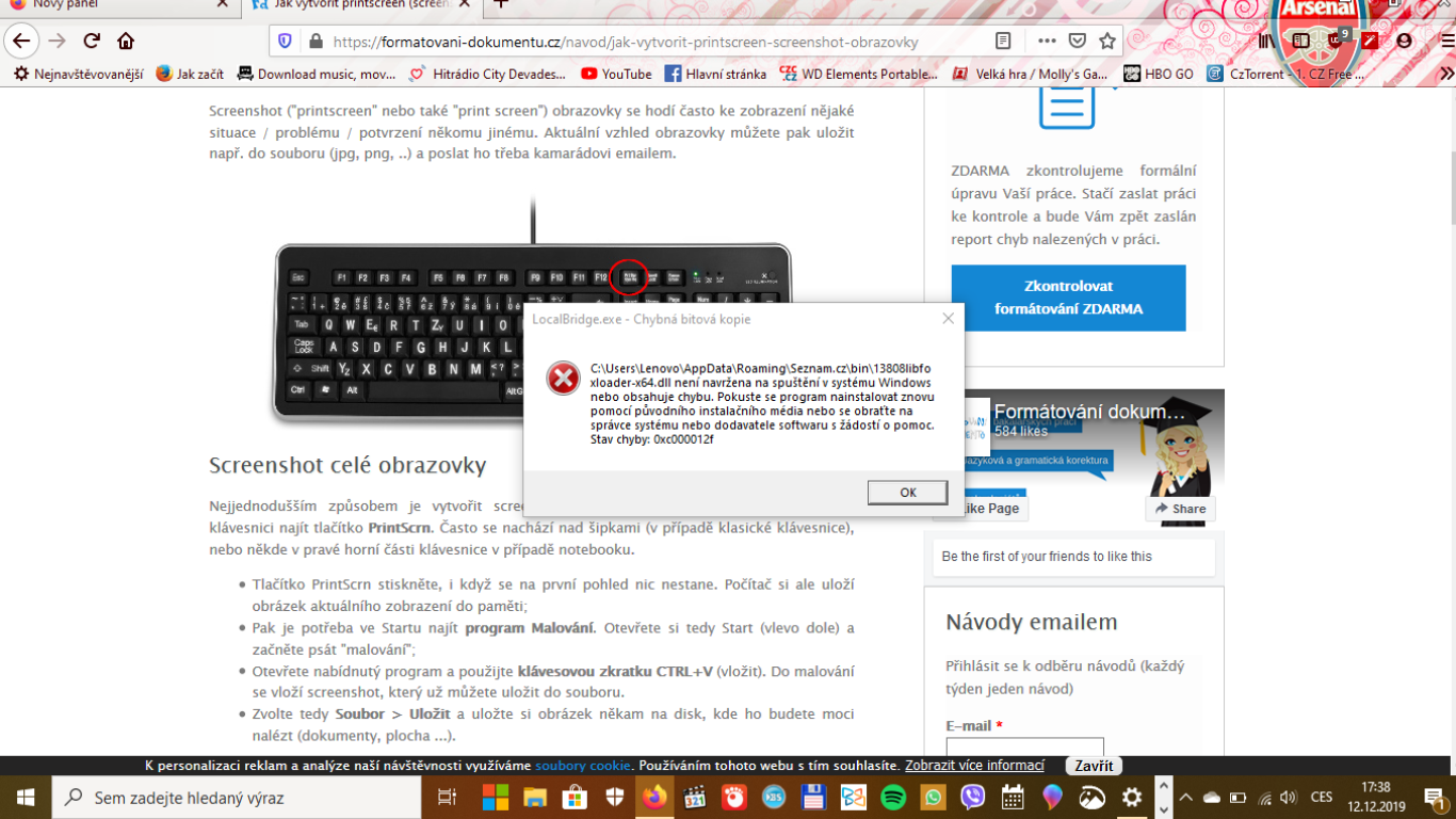Ahoj všem. Mám menší problém. Z ničeho nic mi začalo vyskakovat okno, chybná bitová kopie. Nevíte někdo co s tím? Přikládám prtsc.