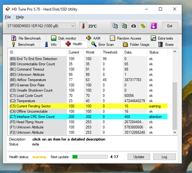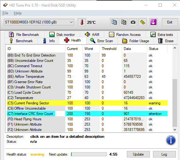c7: vadný sata kabel nebo napájecí konektor, vyměnit oboje c6: vadné zápisy na disku, mohly být způs…