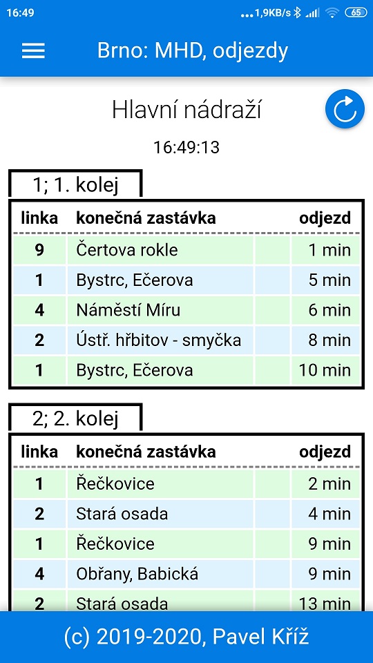Není to úkol. Pracuju na aplikaci s informací o odjezdu busů a šalin (aka tramvají) v Brně; pro jednotlivý zastávky.