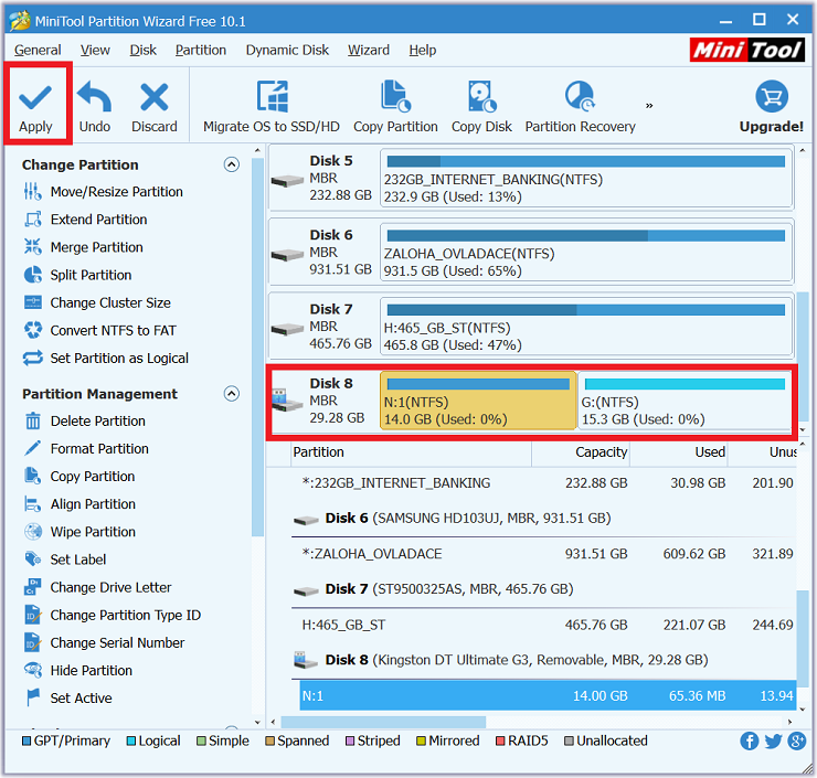 MiniTool Partition Wizard to zvládne.I když určité riziko je vždy.