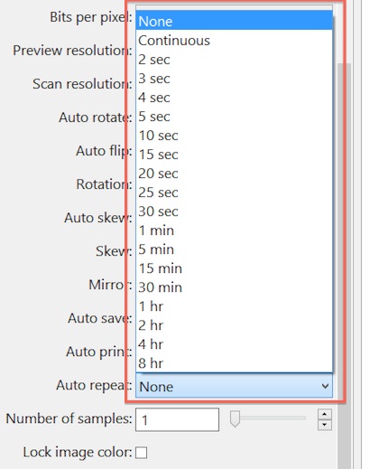Vuescan nepoužívám, ale čas pro automatické skenování by měl jít nstavit. Záložka Input, volba Auto repeat. Nahrazuje to ruční kliknutí na tlačítko Scan.