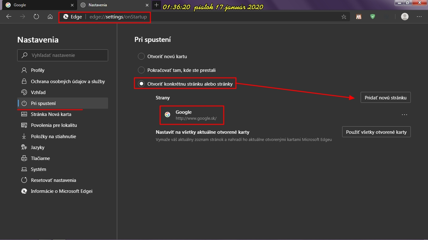 Inak - i mne po prvom spustení Edge nabehol BING!!!!! A ja som si to takto upravil a keď Edge spustím - okamžite som na Google!