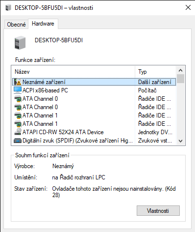 Tak to neznámé zařízení není ten disk. Ani nevím, co by to mohlo být. Jelikož disk je nějaké jiné za…