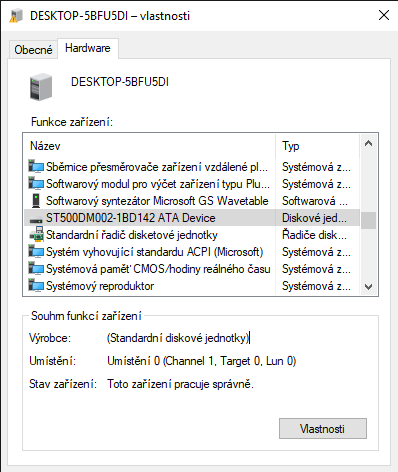 Jsi si jistý, že to neznámé zařízení je ten disk? Co vidíš ve Správci disků?