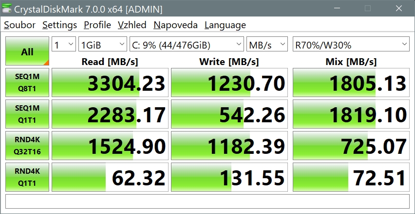 Takové hodnoty se běžně naměří i na SSD M.2. Takhle to mám já: