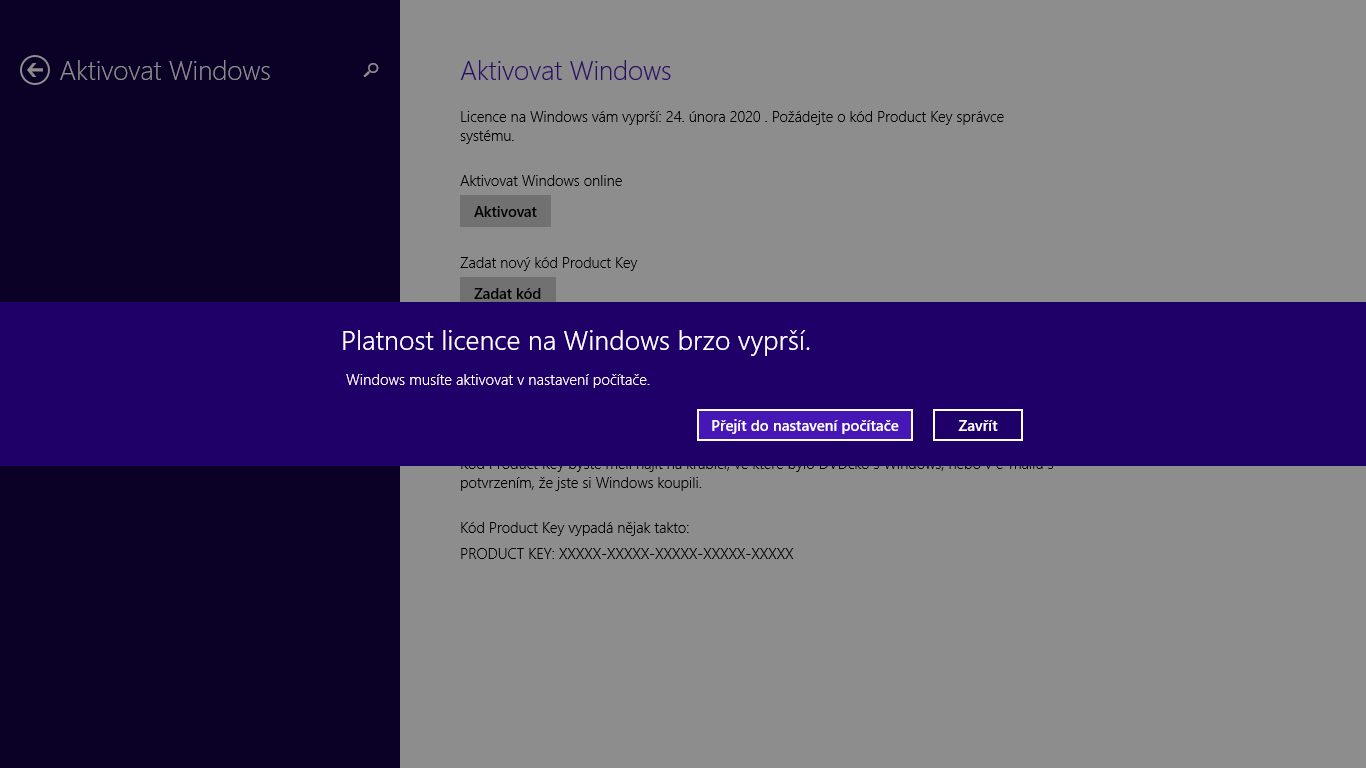 Problém s reaktivací Windows