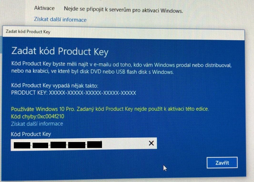 Pokud ti i aktivace pres telefonni automat zahlasi, ze to aktivovat nelze, tak potom je to jasny a prodejce musi poslat jiny produkt key, coz vetsinou neni problem. Ale chteji printscreeny z neuspesne aktivace a co ti zahlasil ten telefonni automat.