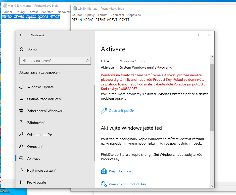 koupil jsem na Aukru licenční kód pro Win 10 Pro.