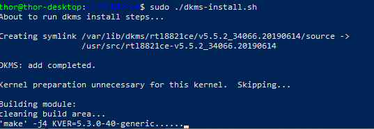 Výborně ! Teď jen postupně napiš : chmod +x dkms-install.sh chmod +x dkms-remove.sh A nakonec: s…