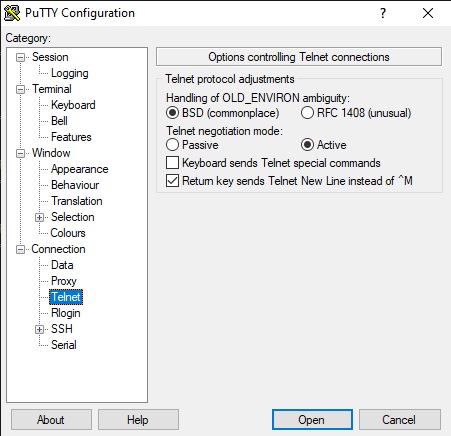 Vyzkoušen teda telnet integrovaný ve Windows, chová se to stejně......
