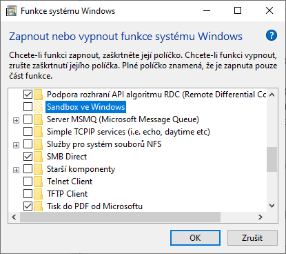 Ahoj proč nemám ve windows 10 Pro 1909 Sandbox? Prosím o radu ,Děkuji