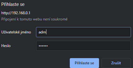 Login do routeru, problém