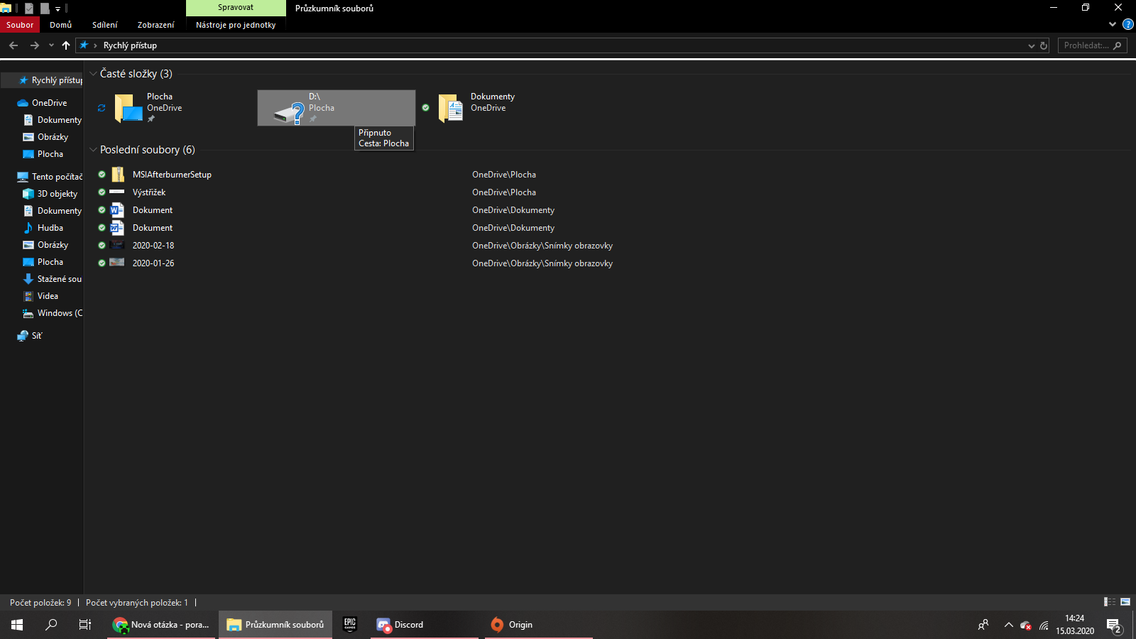 Máš to nějak zašmodrchané s OneDrive. Odstraň spojení, zástupce či Link, mezi D: a OneDrive. Popř. O… poslední