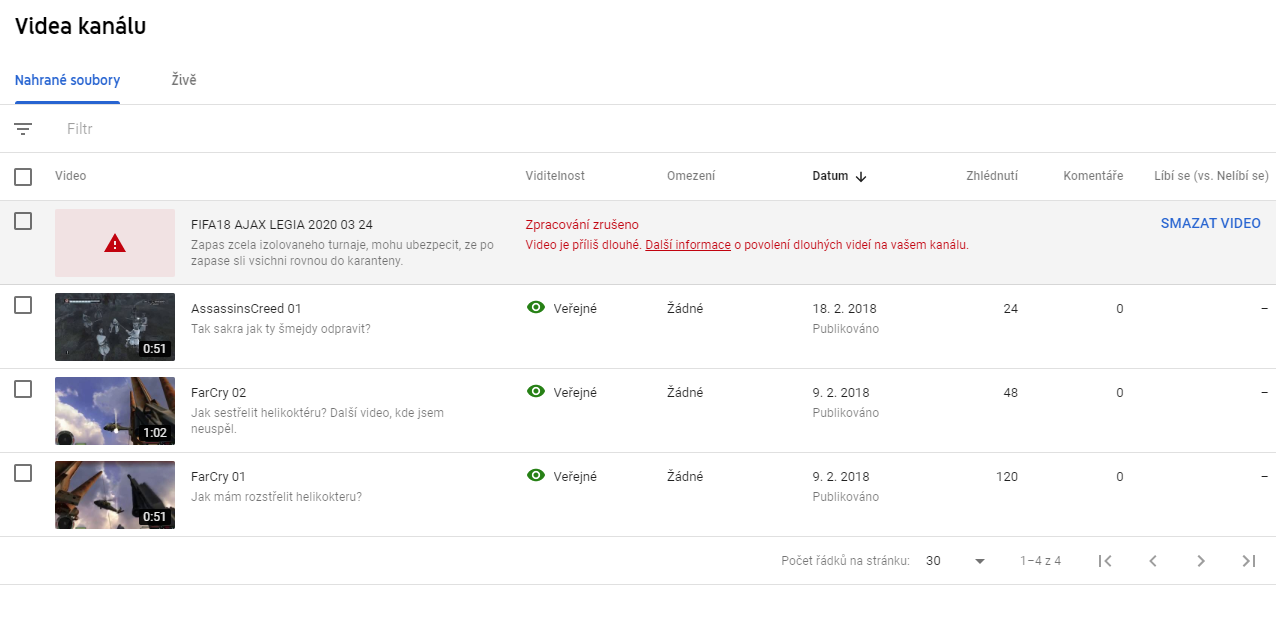 Proč nelze nahrát když tam jsou i o dost delší videa?