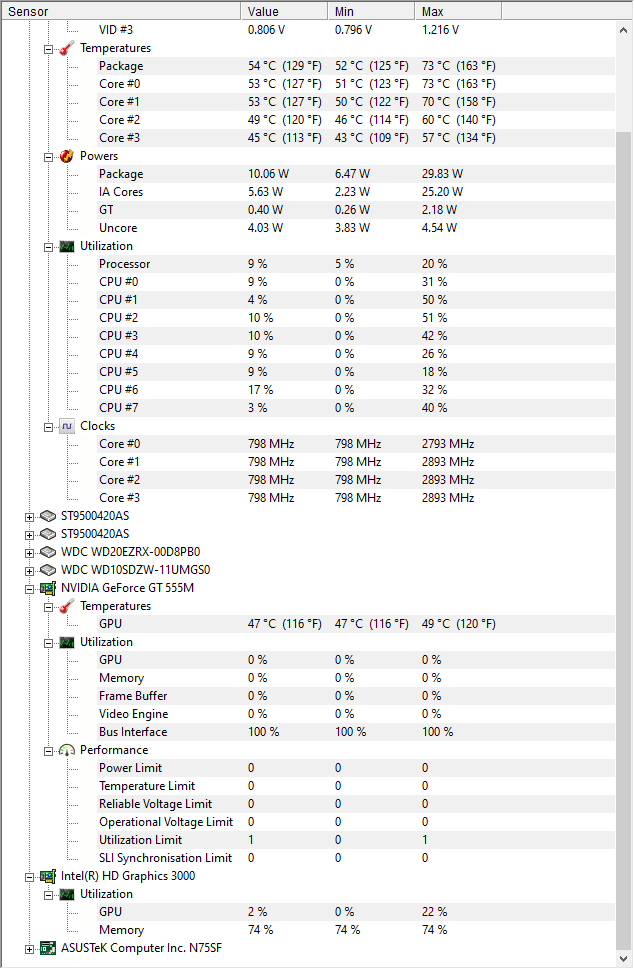 zvláštní, že za dobu monitoringu procesor dokázal předvést nějaká minima-maxima: