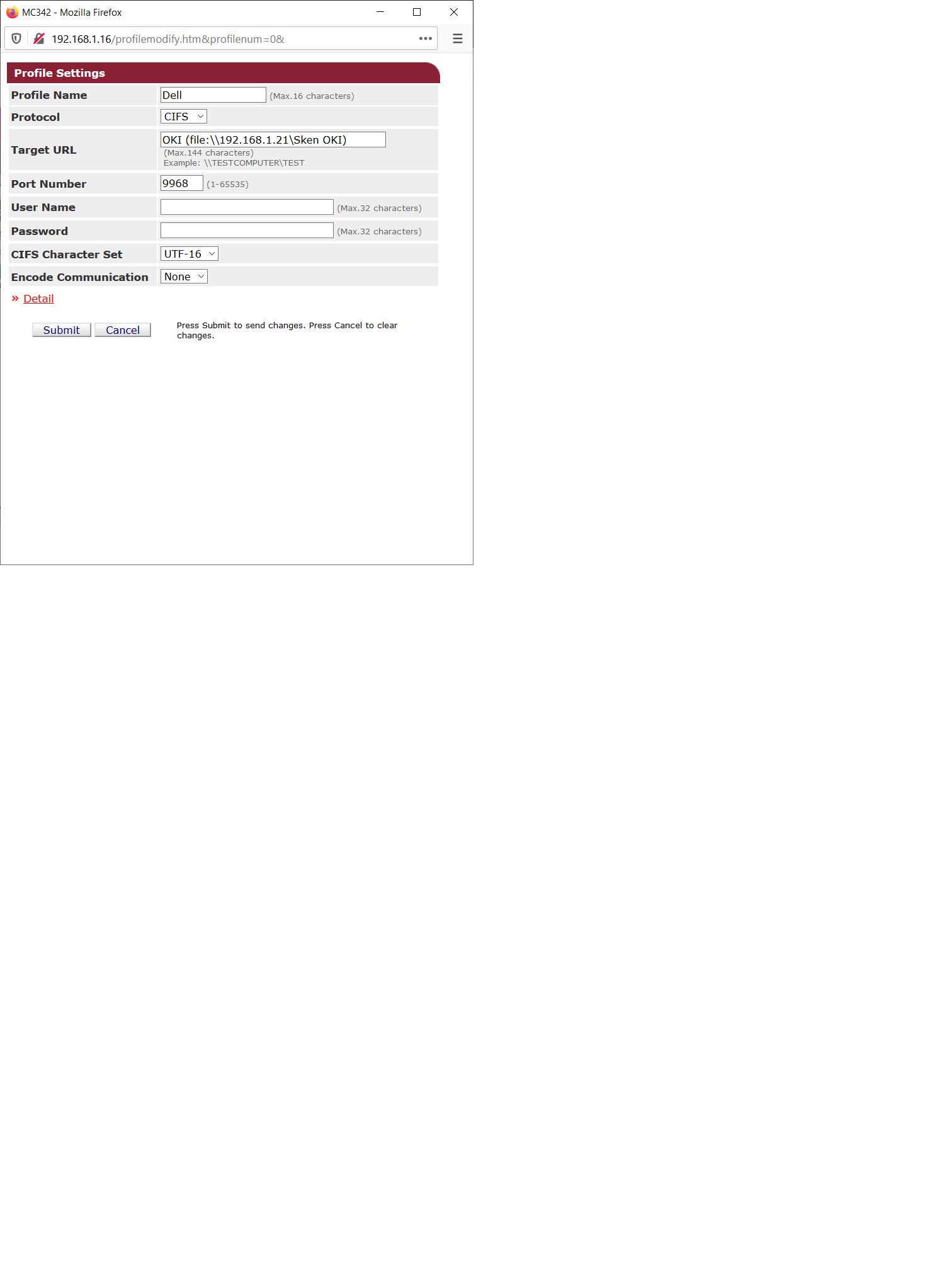 DIvne je, ze tam mas port number, to sa na inych tlaciarnach nevyplnuje, takisto moze byt problem User name, niektore tlaciarne vyzaduju ako usera zadat Anonymous.