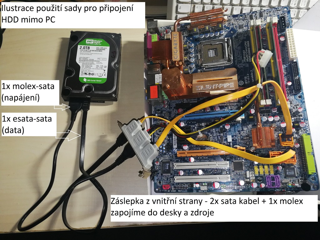 Prodám sadu pro připojení HDD mimo case. Vhodná pokud často potřebujete připojit HDD a nechce se vám otevírat skříň. Nepoužitá. Cena 200 osobní odběr, 250 zásilkovna. Mám 4 sady. Viz foto: