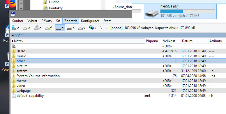 Z tohoto (polo)mrtvého mobilu bych potřeboval dostat osobní data - kontakty/smsky, atd. Displej je tmavý, klávesnice nereaguje. Po připojení k pc jako mass storage se normálně zobrazí obsah, což by mělo stačit. Ale nestačí, protože nezobrazí to, co potřebuji. Ze 175MB celkové paměti ukazuje volných 101, tj. cca 70 by mělo být obsazeno systémem+daty. Když procházím složky, celkově napočítám pouze 5mega viditelných=přístupných. Jsou to pouze fotky, které jdou přemístit do bezpečí. Jde mi pouze o ty osobní údaje, telefon je na vyhození. Průzkumník je nastaven na zobrazení skrytých položek, Total Commander taky. Jak získat přístup k nezobrazeným položkám?