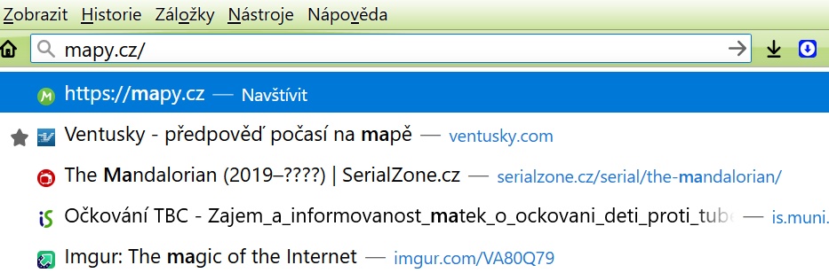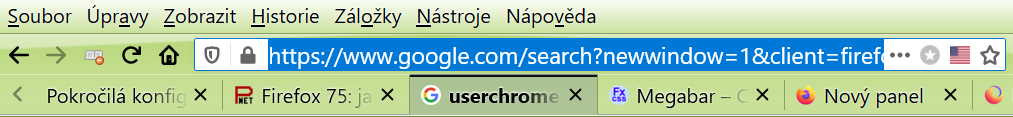 Aktualizace Firefoxu 75 zvýraznila adresní/vyhledávací řádek, viz obrázek.