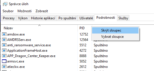 zobrazit PID dokáže i taskmanažer (ten je ve Win10 jinak obzvláště povedený a vylepšený) [89771-tas… poslední