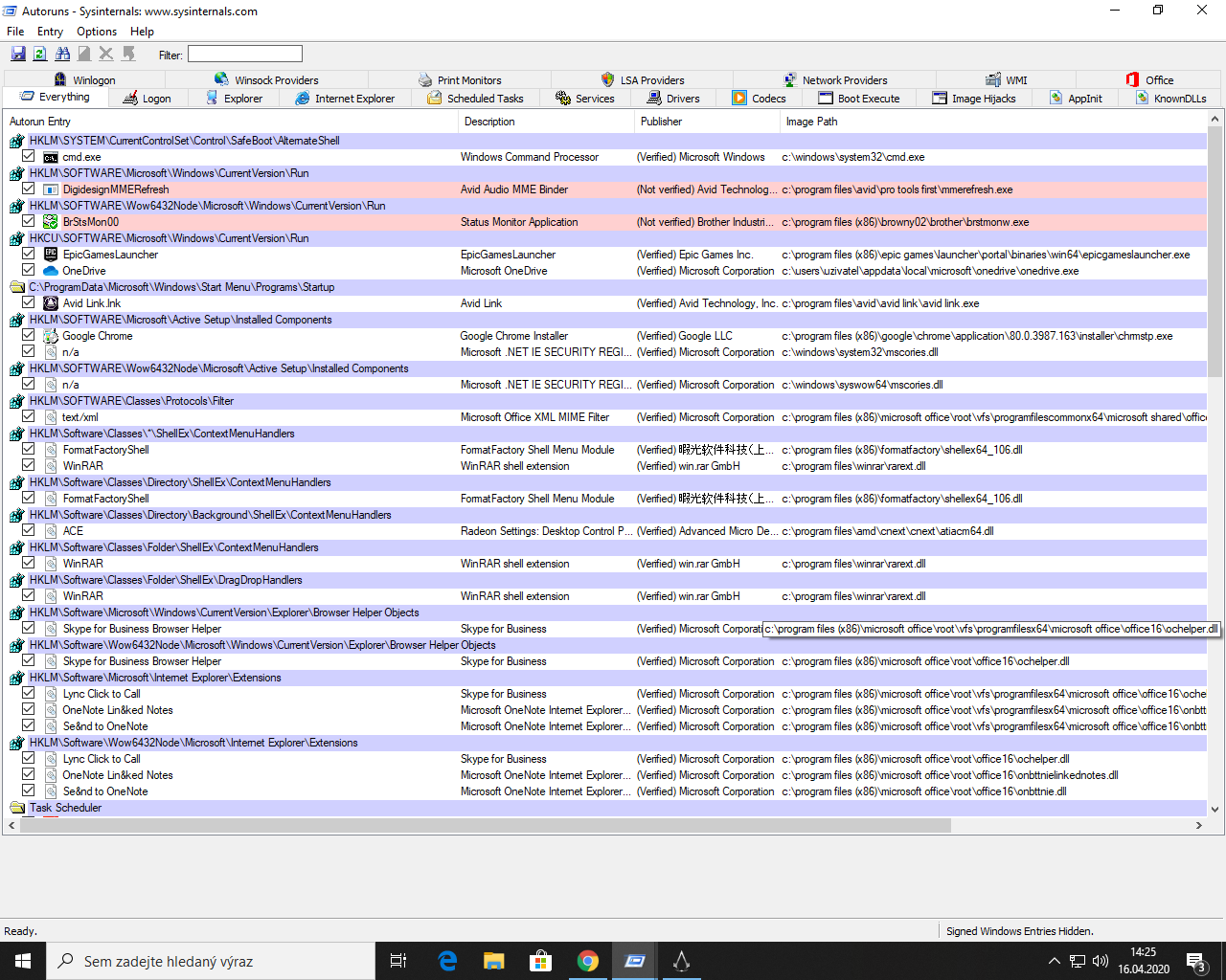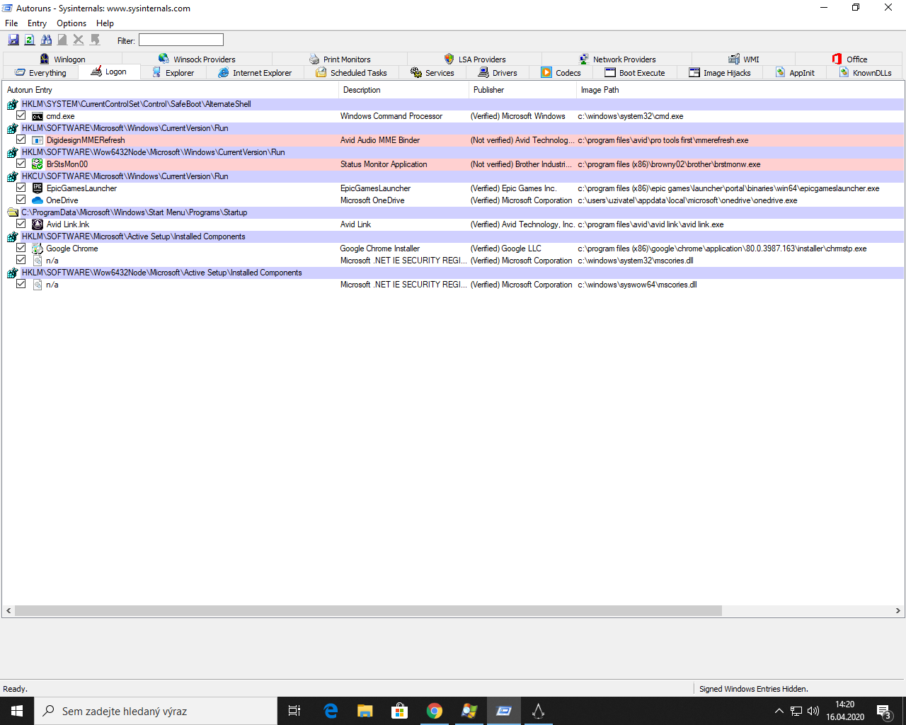 ms autoruns ukazuje plevel, který automaticky startuje v pc, default mimo originálních služeb windows.