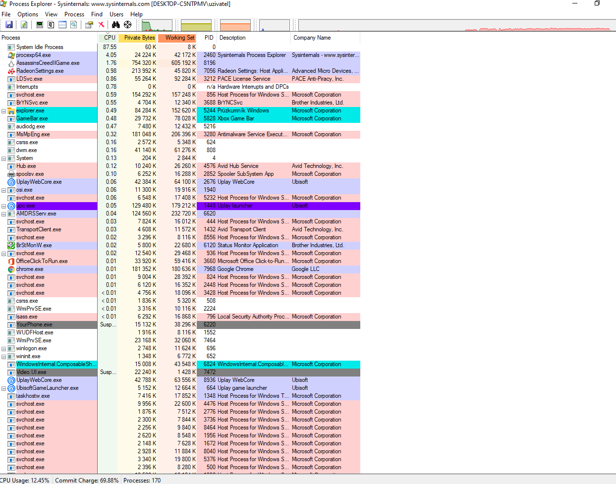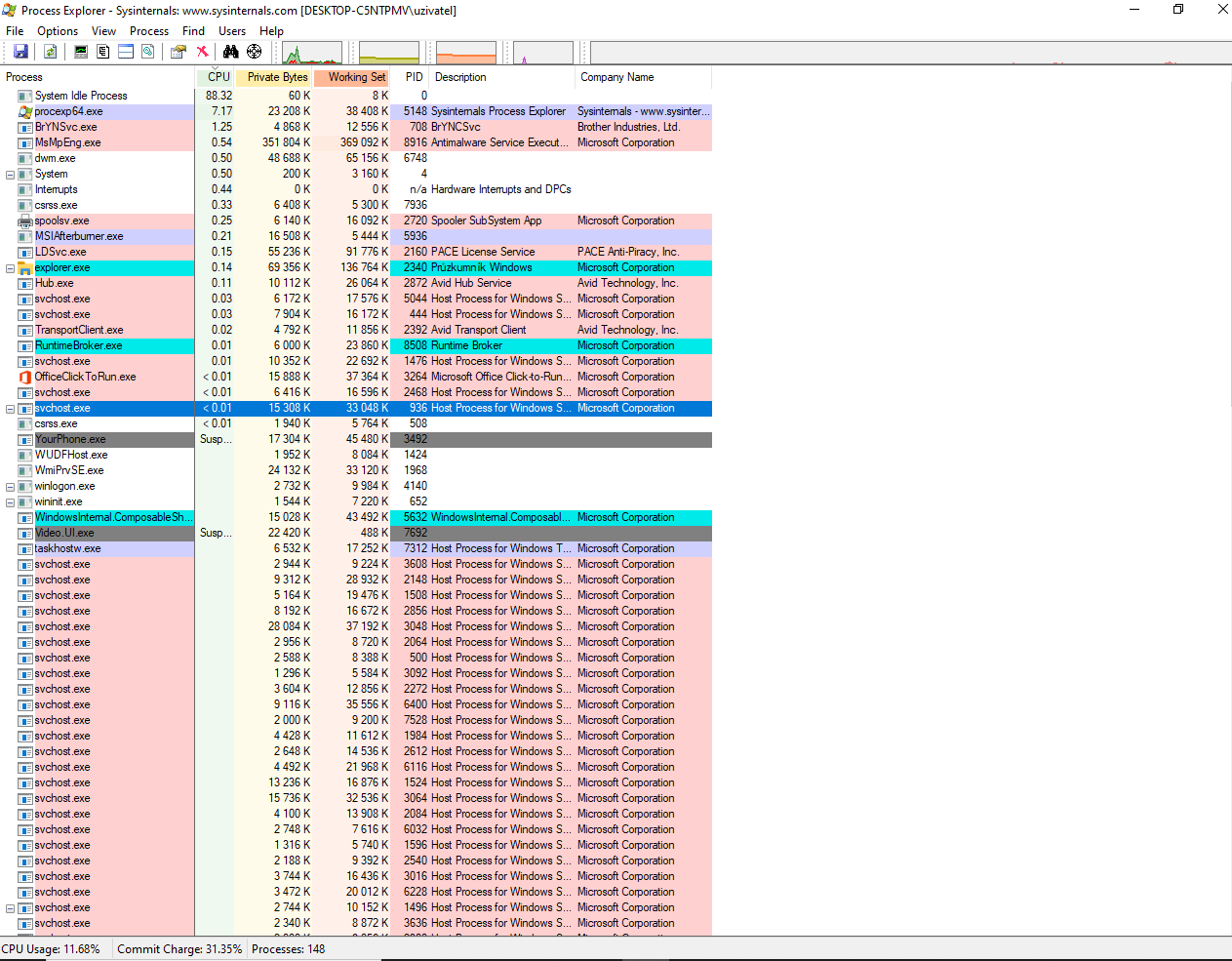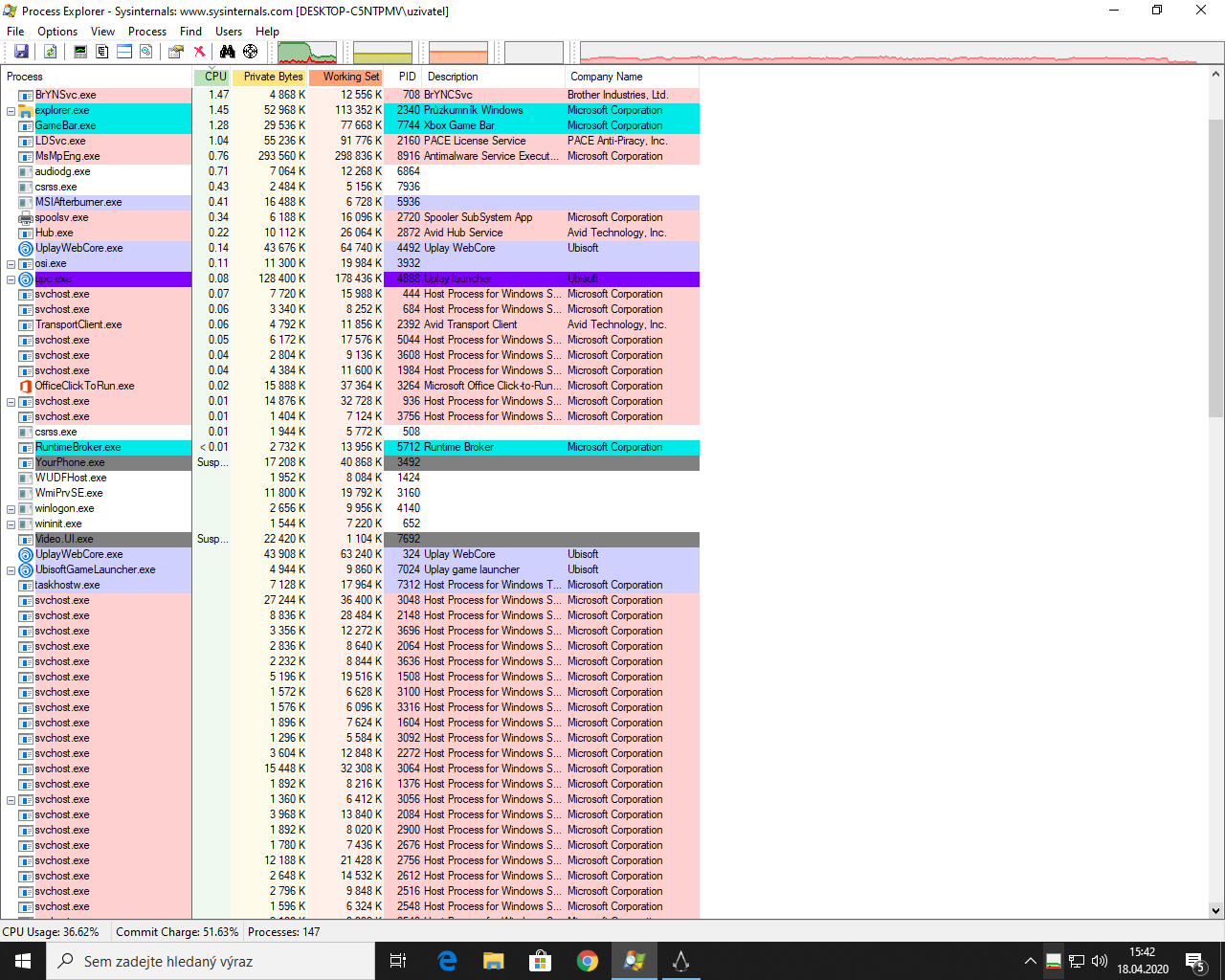 - pro kontrolu procesů v paměti process explorer.