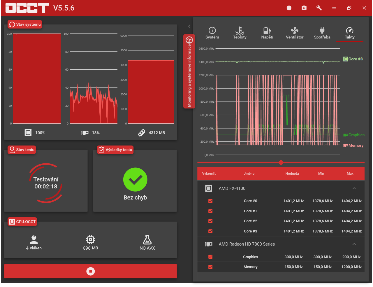 Vytížit čtyři FX-4100 vlákna na 100% není dnes zas takový problém. Hlavně se jedná jen o maximální zaznamenanou hodnotu (během záznamu má utilizaci jen 24-38%).