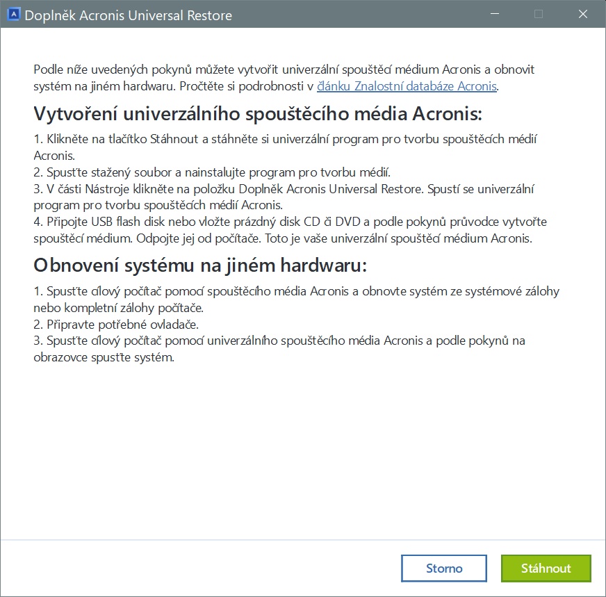 V Acronisu 2019 je možnost použití obnovy na jiný hardware - Acronis Universal Restore (ke stažení p…