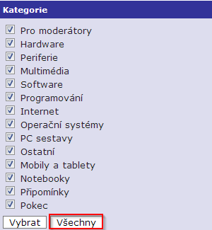 - máš zatržené všechny kategorie (včetně Pokecu) - zobrazují se ti Všechny