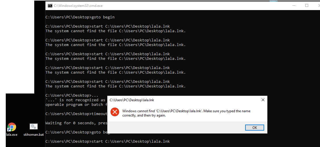 C:\Users\PC\Desktop\stihoman ale děje se to samé, píšu špatně cestu nebo zástupce prostě nejde spustit?