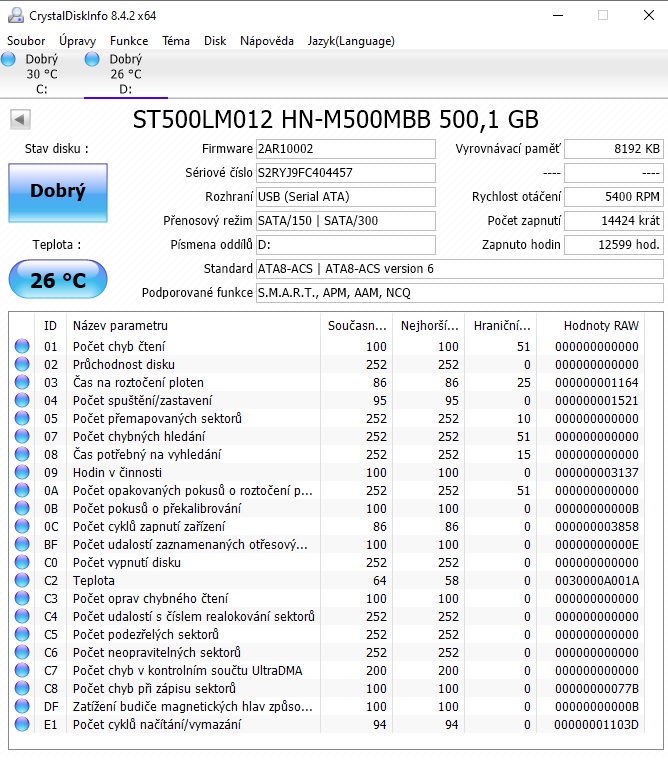 Přidat otázku mezi oblíbenéZasílat nové odpovědi e-mailem Externí HDD Verbatim - je výpis SMART v pohodě?
