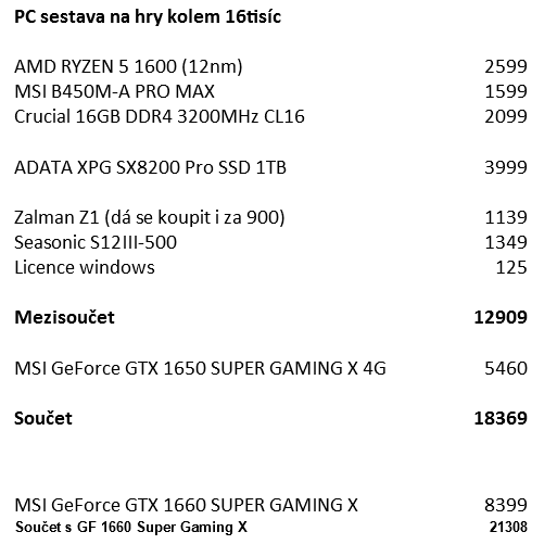 | Mrkni do sekce PC sestavy, je tam toho na výběr víc než dost. Lukas1982 26.04.2020 14:11 |
