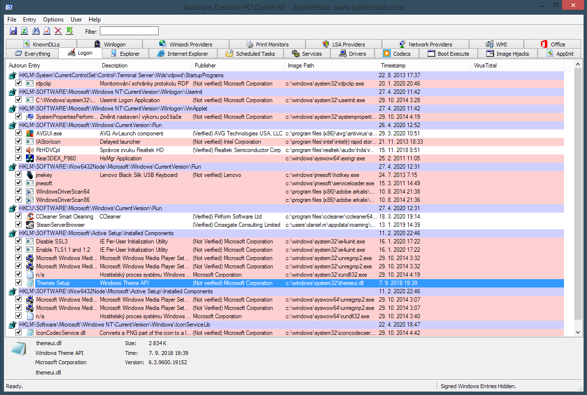 ms autoruns - roztáhnout levý sloupec ať přečteš celý název. to samé s umístěním na disku.