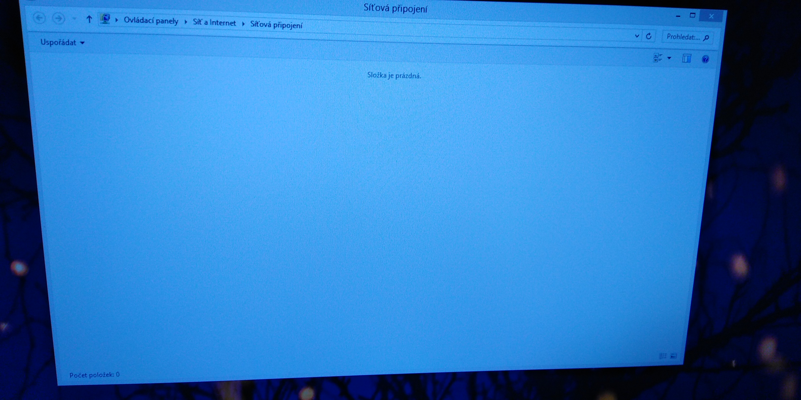 prázdný seznam síťových připojení - asi vadná práva. nevratně rozdrbáno ccleanerem. tebou nesmyslně zakázaná nějaká služba přes svchost - nevíš proč ani jaká služba to měla být.
