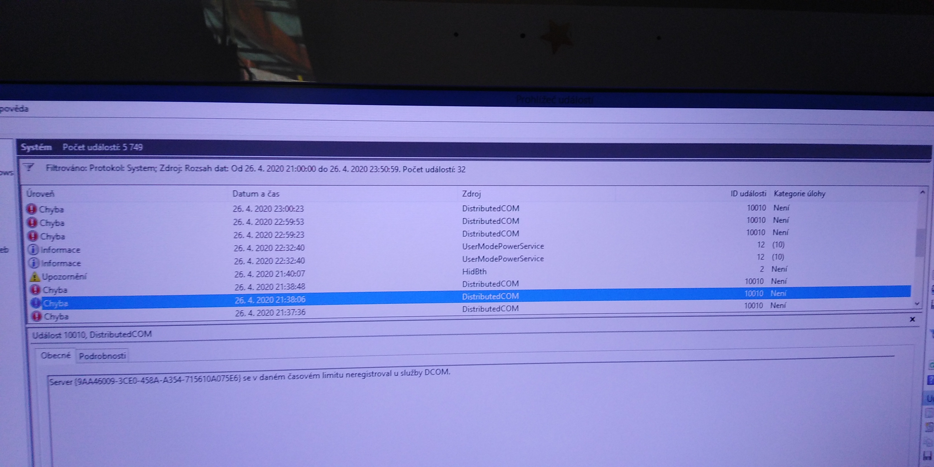 v prohlížeči událostí máš v nadpisu: "filtr - úroveň chyba" ... jak se ti tam dostal jen omezený výpis chyb? jak z toho poznáš, kdy měl být restart a kde je to hodinové vypínání z tvého nadpisu?