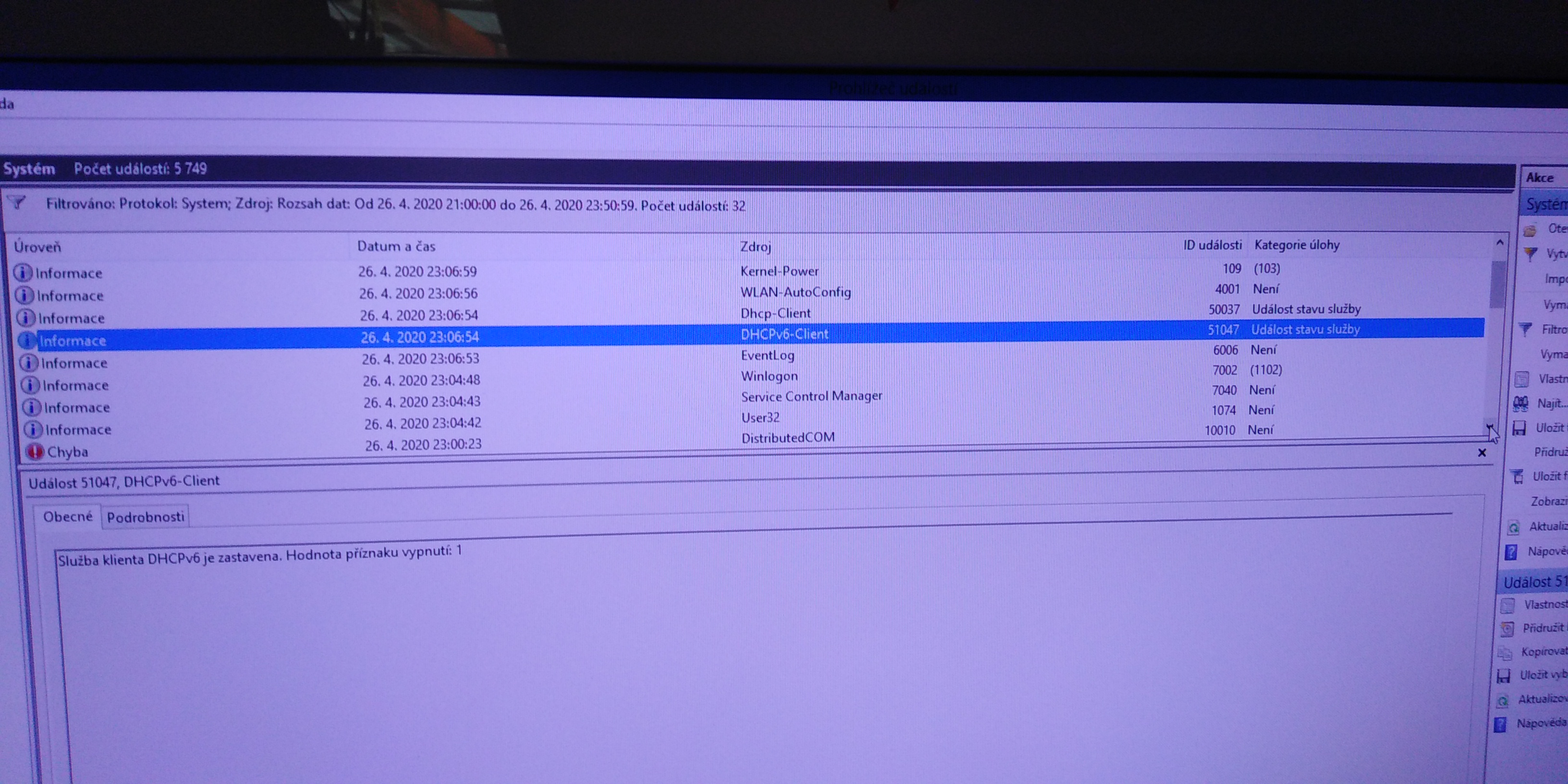 prohlížeč událostí: