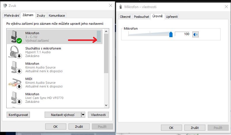 Nastavení mikrofonu