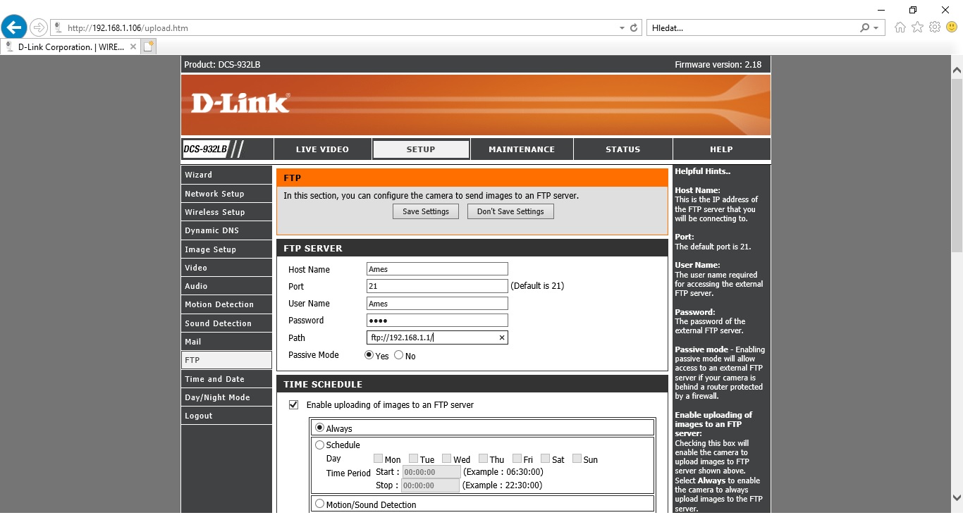 Chci se zeptat ještě jak na tom Routeru nastavím FTP server aby to z kamery ukládalo na ten harddisk.