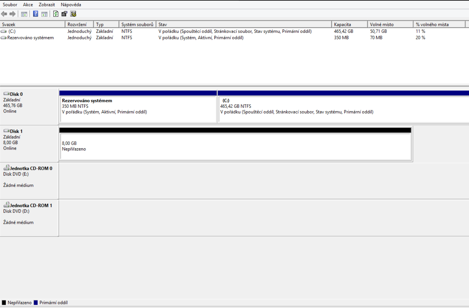 - kontrola rozložení hdd ve správě disků (diskmgmt.msc) napoví, kde má systém aktivní oddíl s bootloaderem a co je možné vyřadit. jsou samozřejmě lepší partition managery.
