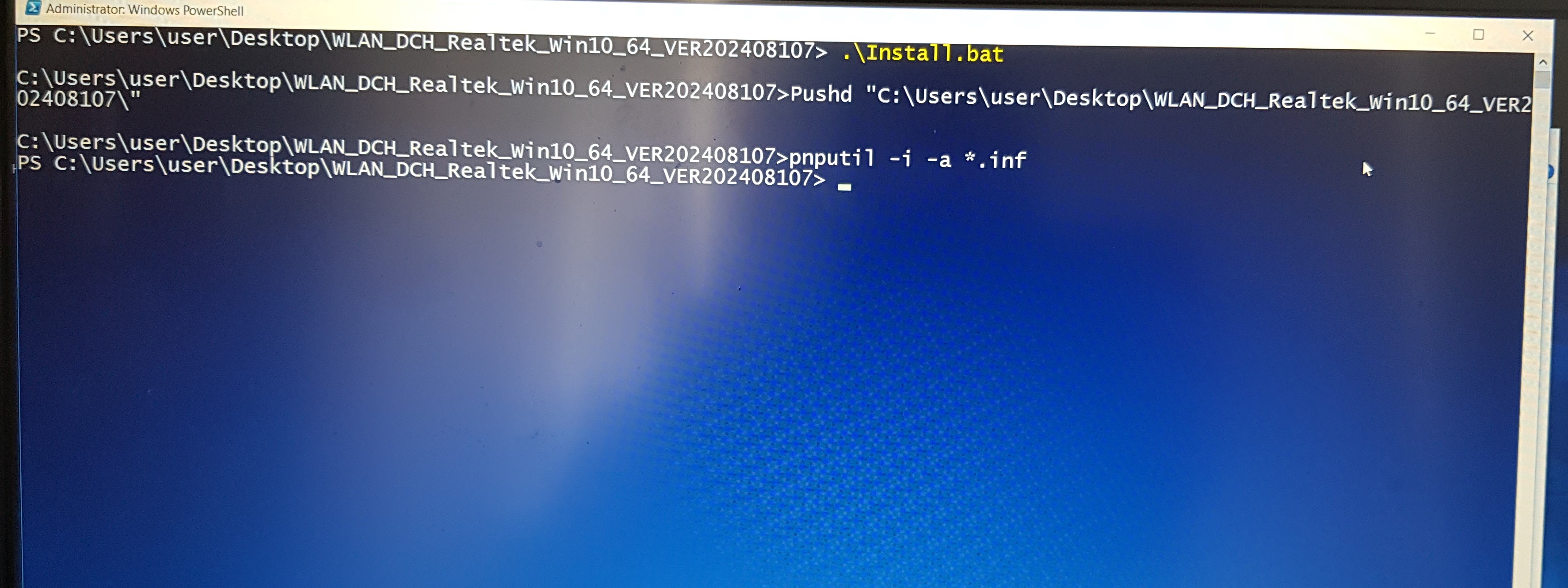 ano vykricniky mam prikladam foto. a pres ten powershel sem to zkousel na ovladace wi-fi a napsalo to tohle