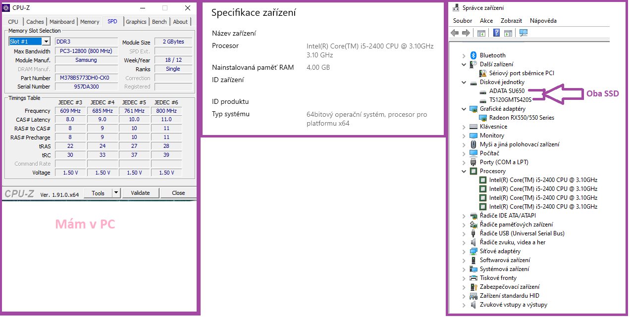 Ten ADATA SU650 je jaké velikosti? 120, 240 nebo 480GB? Pokud máš aspoň ten 240GB, tak systém bych n…