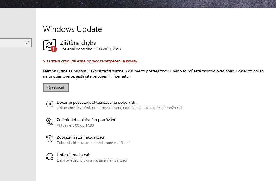 Zrejme nečítaš alebo nemírten po sľovensky v mojom postupe (vyššie), ale obraciaš sa na zive.cz kde ti okrem prežitej voloviny, možno tak účinného postupu z čias OS W7, týkajúc sa zmazaní komplet zložiek s obsahom C:\Windows\SoftwareDistribution\*.* \Download\*.*, nič neporadili.