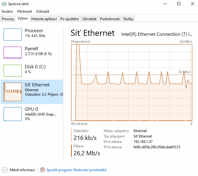 A pokud se to děje jen na síťovce Intel I219-LM a na jiných to funguje normálně, tak asi je na ní rychlost něčím omezena, nebo je to vadná série. Každopádně bych to řešil tak, že bych si to nejdříve zkopíroval a pak teprve spustil, když je u kopírování rychlost cca 30x větší.