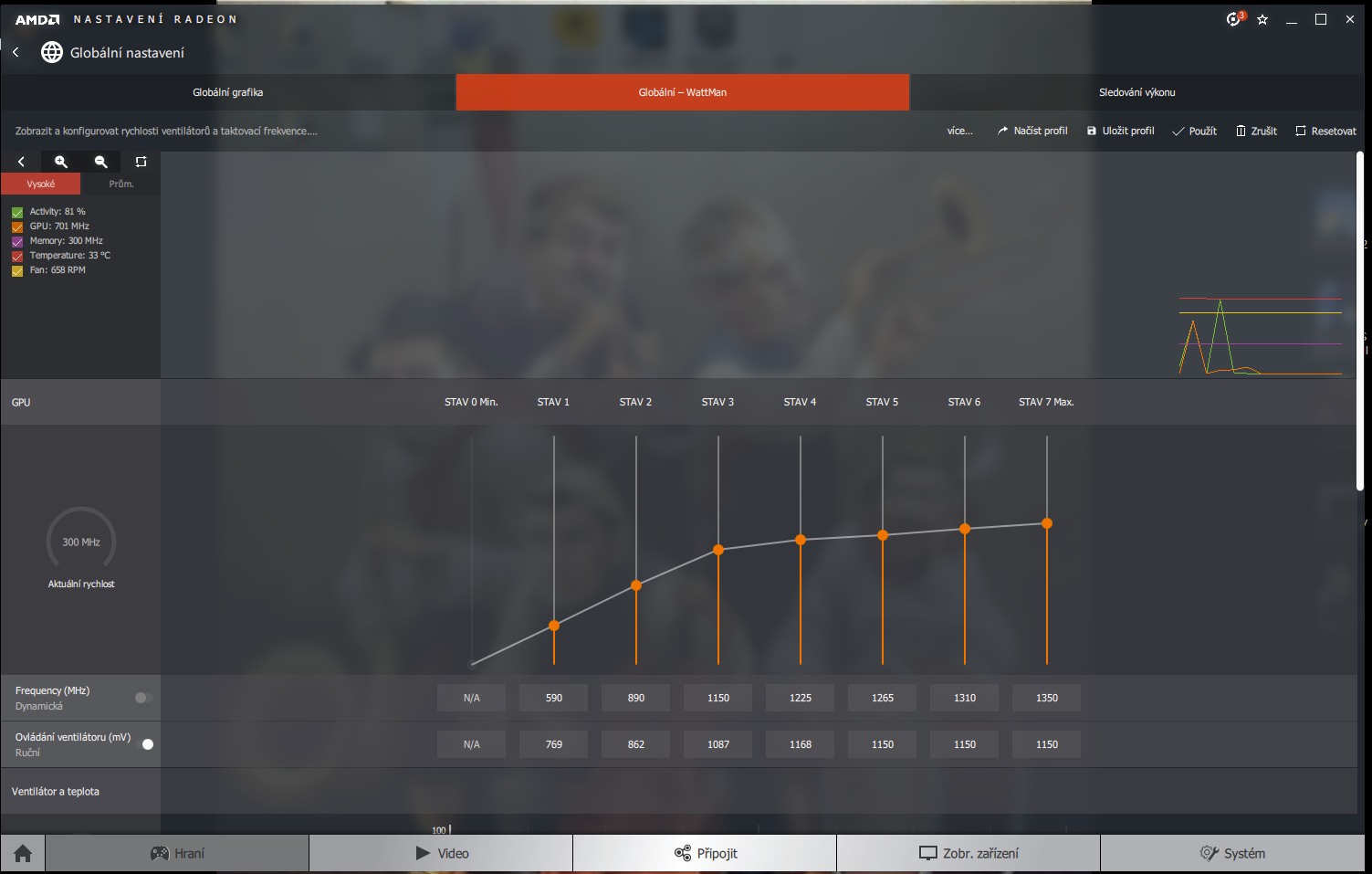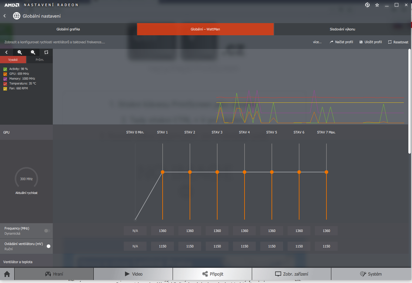 tady máš sreeny s amd wattmana v defaultním režimu mi to schazuje pc.a pak moje nastavení kde sice m…
